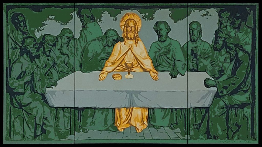 Plus de 200 de travail pour cette grande Cène en trois grands panneaux inspirée d’un petit bas-relief en bronze d’un autel latéral de l’église Saint-Laud à Angers.