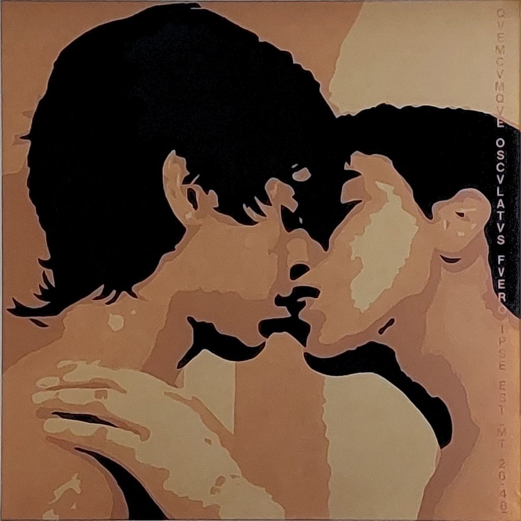 Ce tableau est le premier où j’ai travaillé ce que j’appelle « l’abstraction figurative » : tout a été très simplifié jusqu’à créer des zones étranges, comme les bouches, qui, vues de loin, ne semblent pas gêner la compréhension de l’image.